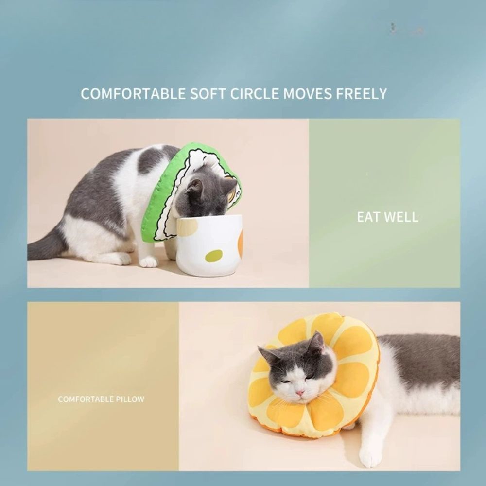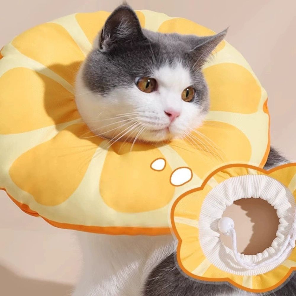 Let your cat or small dog heal comfortably with this soft, waterproof recovery collar. Designed with adorable citrus and lettuce patterns, it prevents licking or biting while allowing your pet to eat, sleep, and move freely. Lightweight and adjustable, it’s the perfect blend of function and cuteness for stress-free recovery.